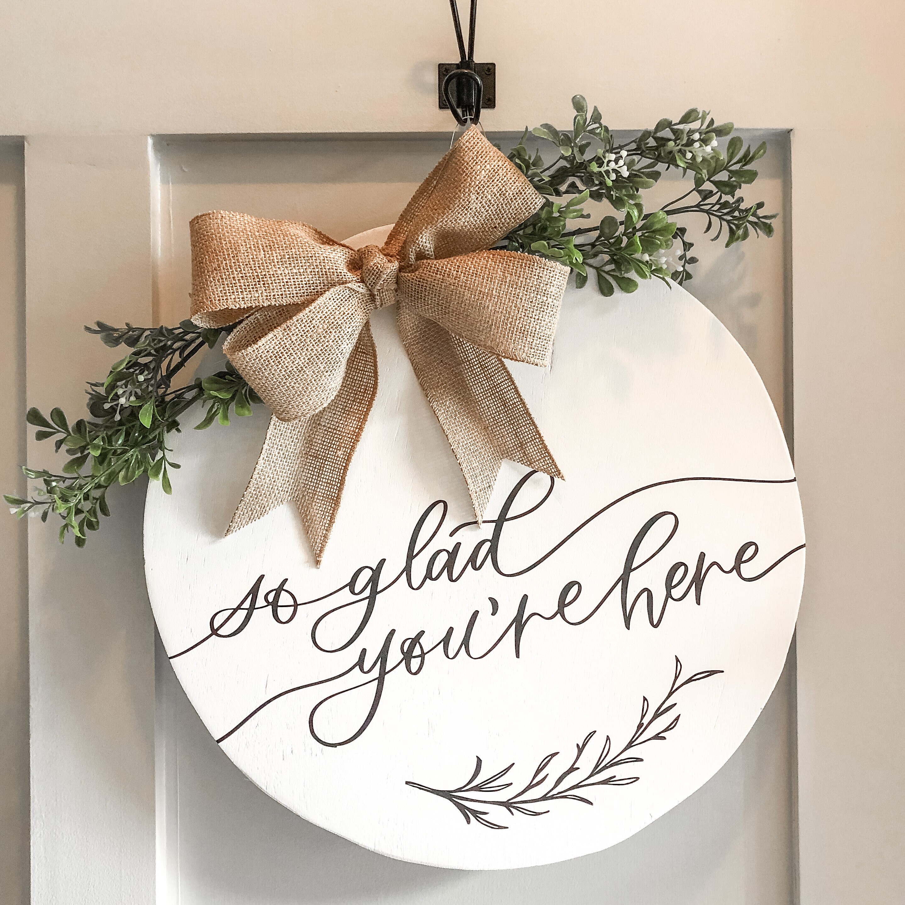 17 In Round Wood Door Hanger So Glad Youre Here Welcome Etsy